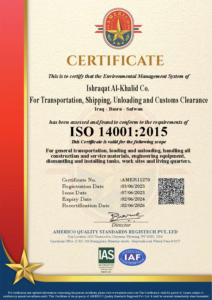 Ishraqat Al-Khalid is a leading and innovative firm specializing in custom clearance, logistics, and transportation, headquartered in Basra, southern Iraq. Founded in 2009, the company has evolved into a trusted partner in the industrial gases sector, providing services to renowned organizations such as Alalamia, Primagra, MEMF, and others. Over the years, Ishraqat Al-Khalid has become a trusted name in clearance services for all types of goods, including vehicles, food, industrial gases, wool, steel, and more.